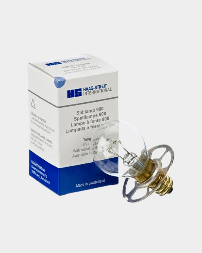 Die Ersatzlampe 6 V / 4,5 A ist für Haag-Streit Spaltlampen der 900-Serie vorgesehen und dient dem zuverlässigen Austausch bei nachlassender Lichtleistung oder Lampenausfall.