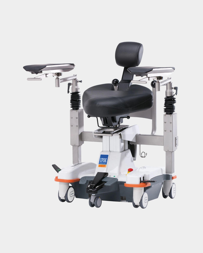 Die Ausstattung mit 360° drehbaren, leicht gängigen Doppellaufrollen ermöglichen ein leichtes Manövrieren und Schieben des Operateurstuhles und erleichtern den platzsparenden Einsatz in ambulanten OP-Räumen. Vielseitige Verstell- und Anpassungsmöglichkeiten im sterilen Zustand, z. B. Höhenverstellung der Armlehnen, Sitzhöhenverstellung und Verstellung der Armauflagen ermöglicht die perfekte Anpassung an den Operateur auch während der OP.